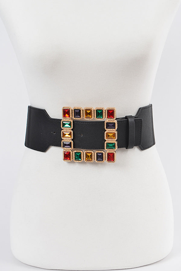 SQUARE SHAPE GLASS BUCKLE PLUS SIZE ELASTIC BELT
