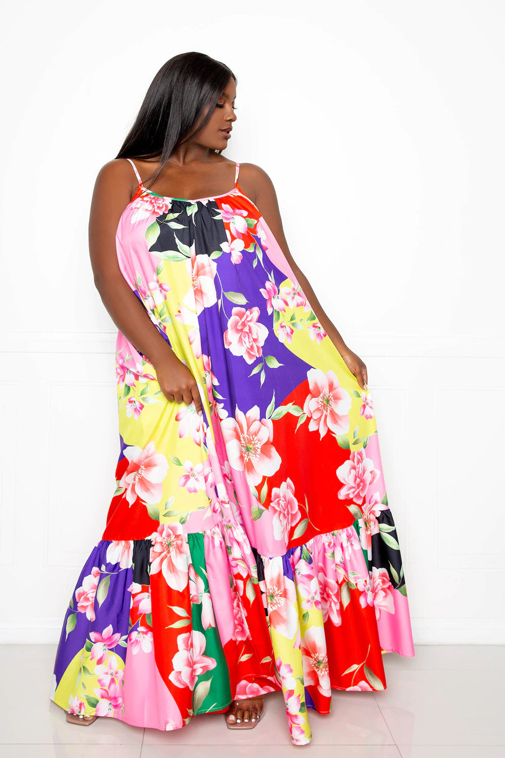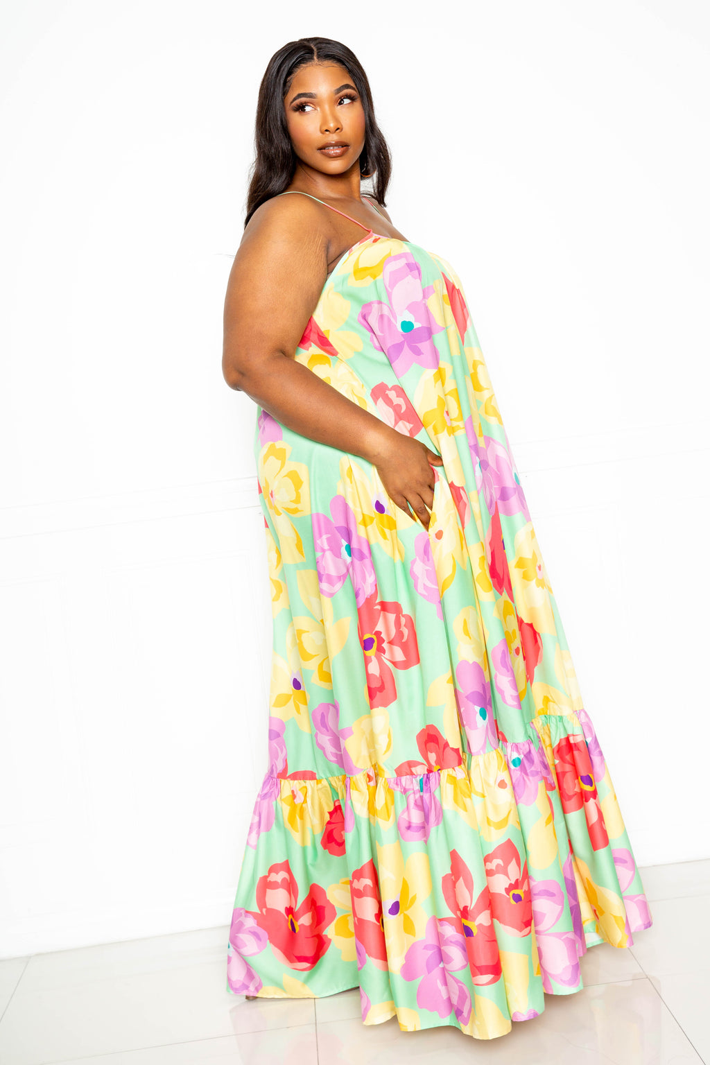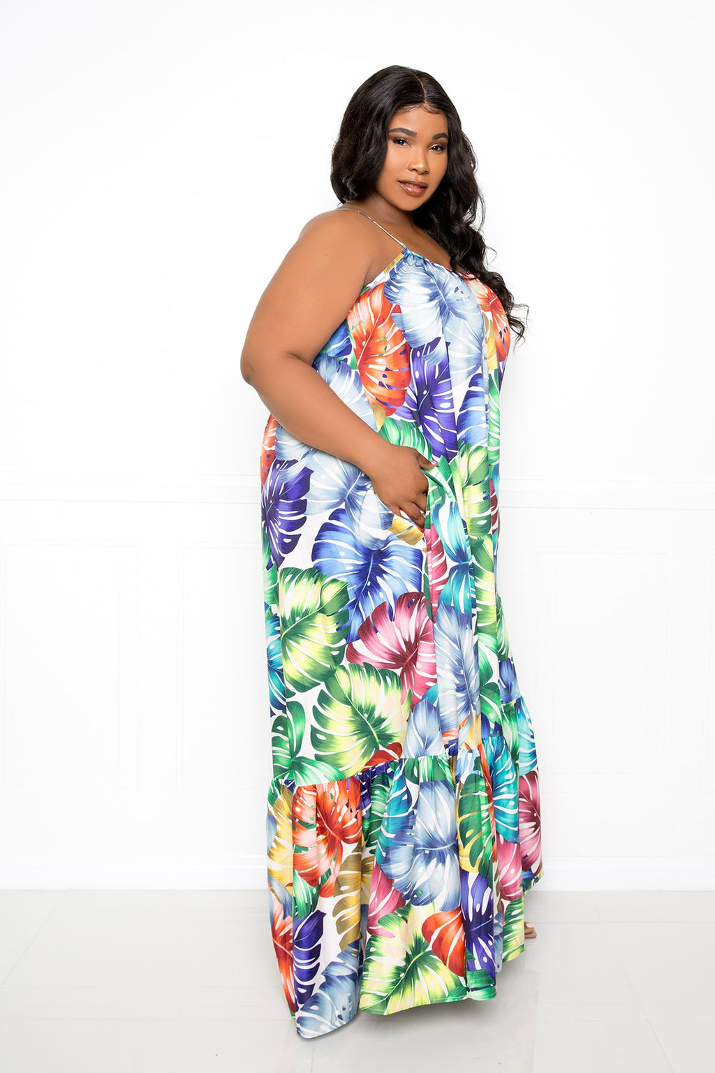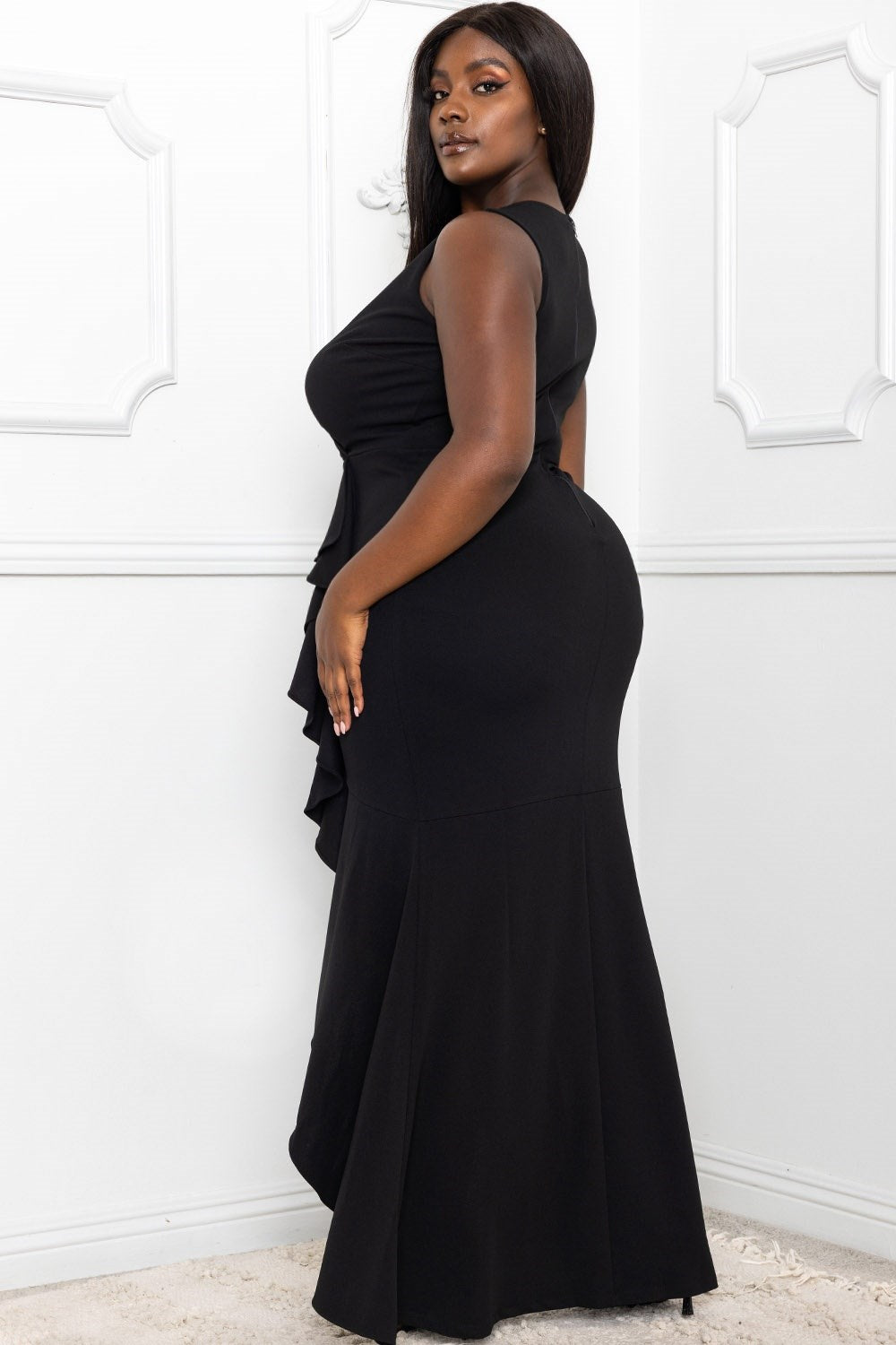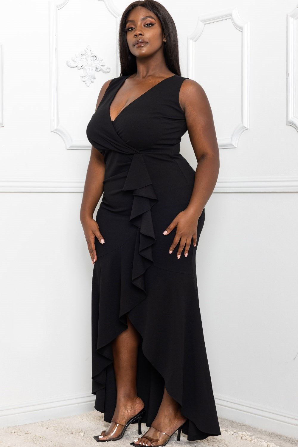 RUFFLE WITH FLARE SKIRT PLUS SIZE MAXI DRESS