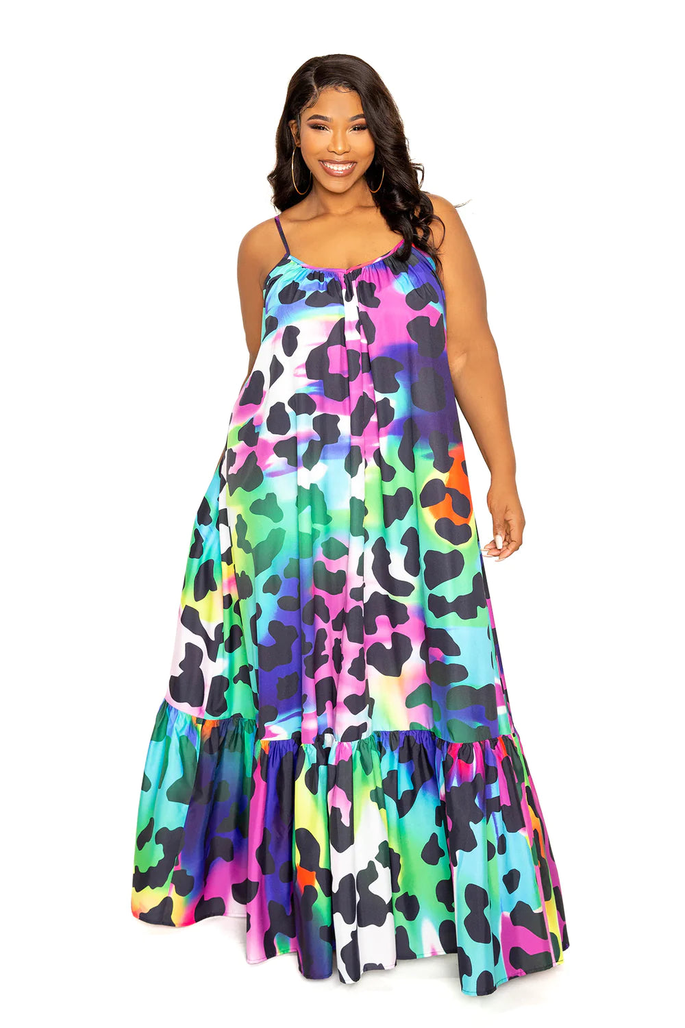 ANIMAL PRINT VOLUMINOUS MAXI DRESS