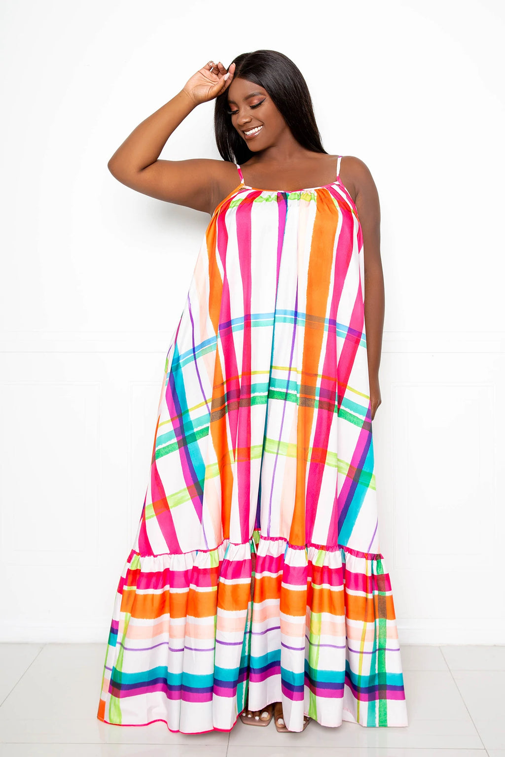 PLAID VOLUMINOUS MAXI DRESS