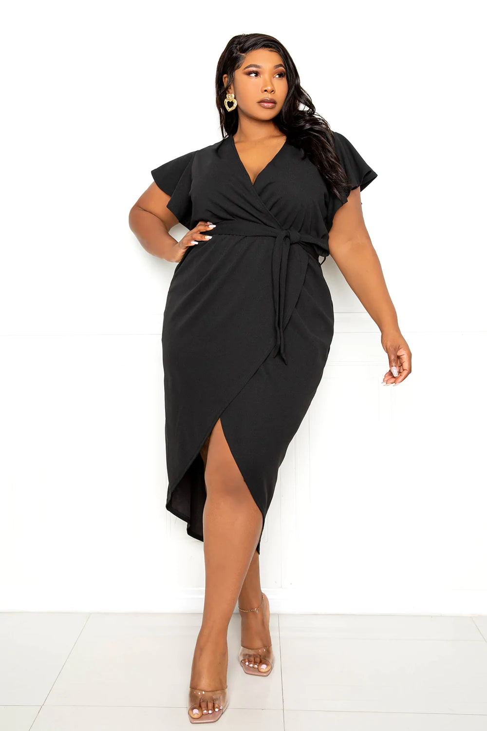 FLUTTER SLEEVE HIGH LOW WRAP DRESS