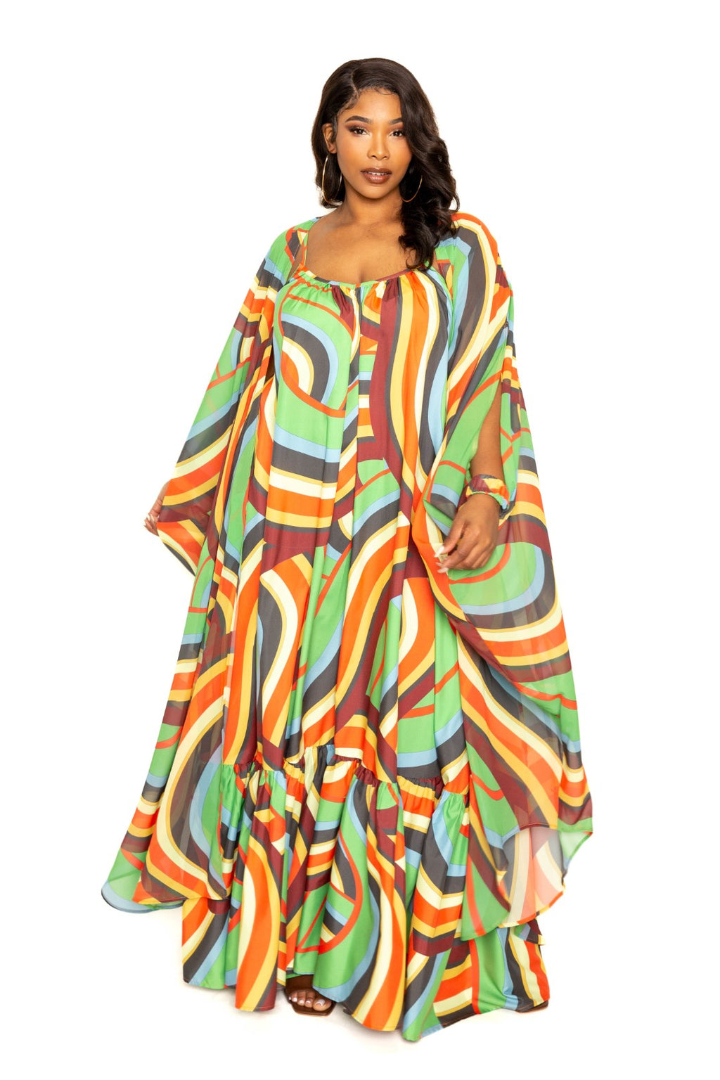 FRINGE SLEEVE MAXI DRESS