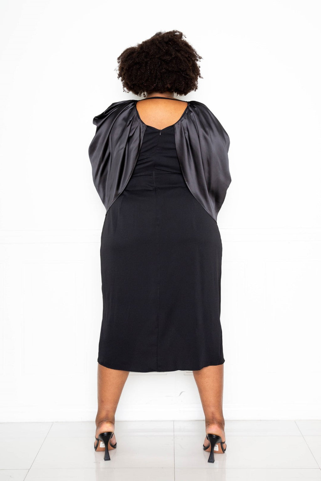 SATIN DRAPE SLEEVE TULIP DRESS
