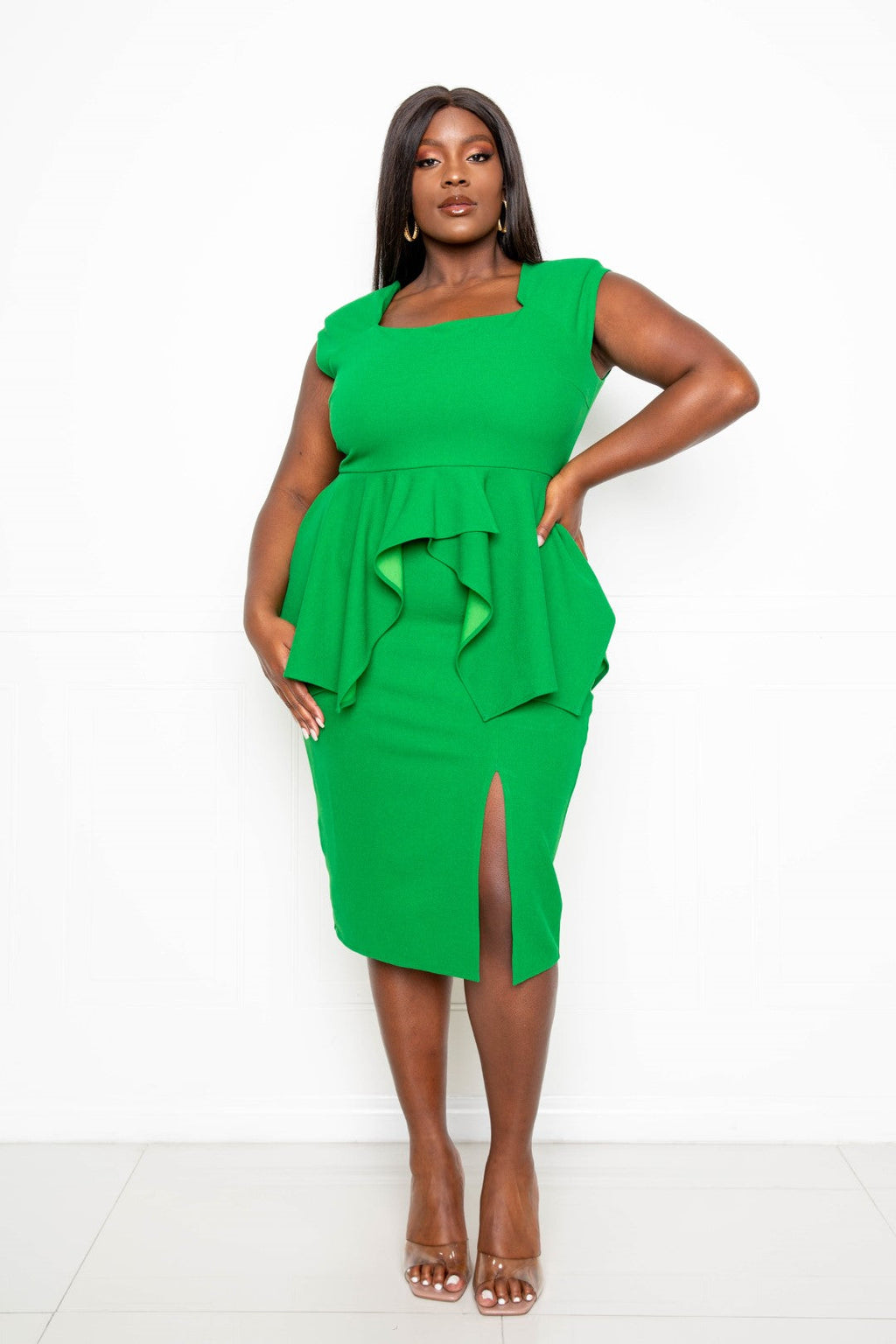 SQUARE NECK PEPLUM BODYCON DRESS