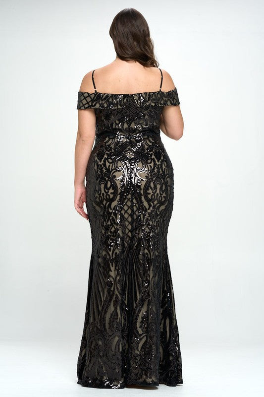 MESH TULLE SHOUDLER PLUS SIZE MAXI DRESS