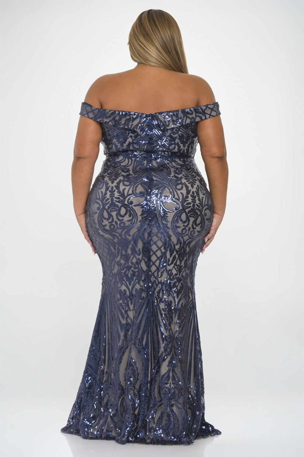 SHIMMER OPEN SHOULDER PLUS SIZE MINI DRESS