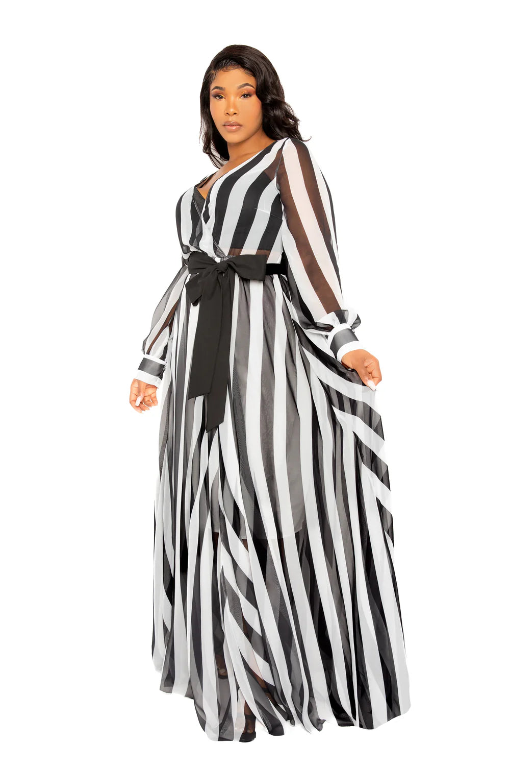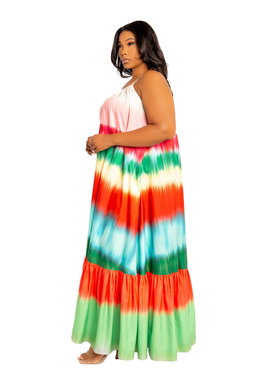 OMBRE STRIPE VOLUMINOUS MAXI DRESS