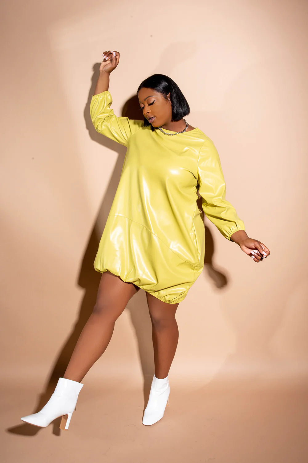 SOLID SATIN 1/2 PUFF SLEEVE MINI DRESS