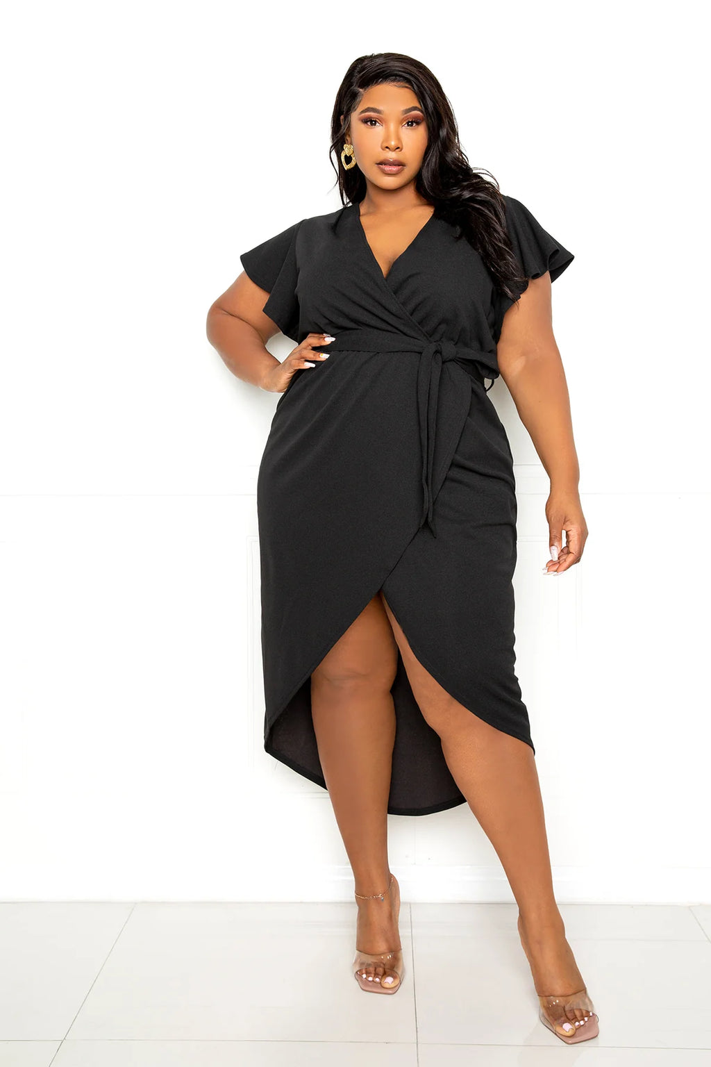 FLUTTER SLEEVE HIGH LOW WRAP DRESS