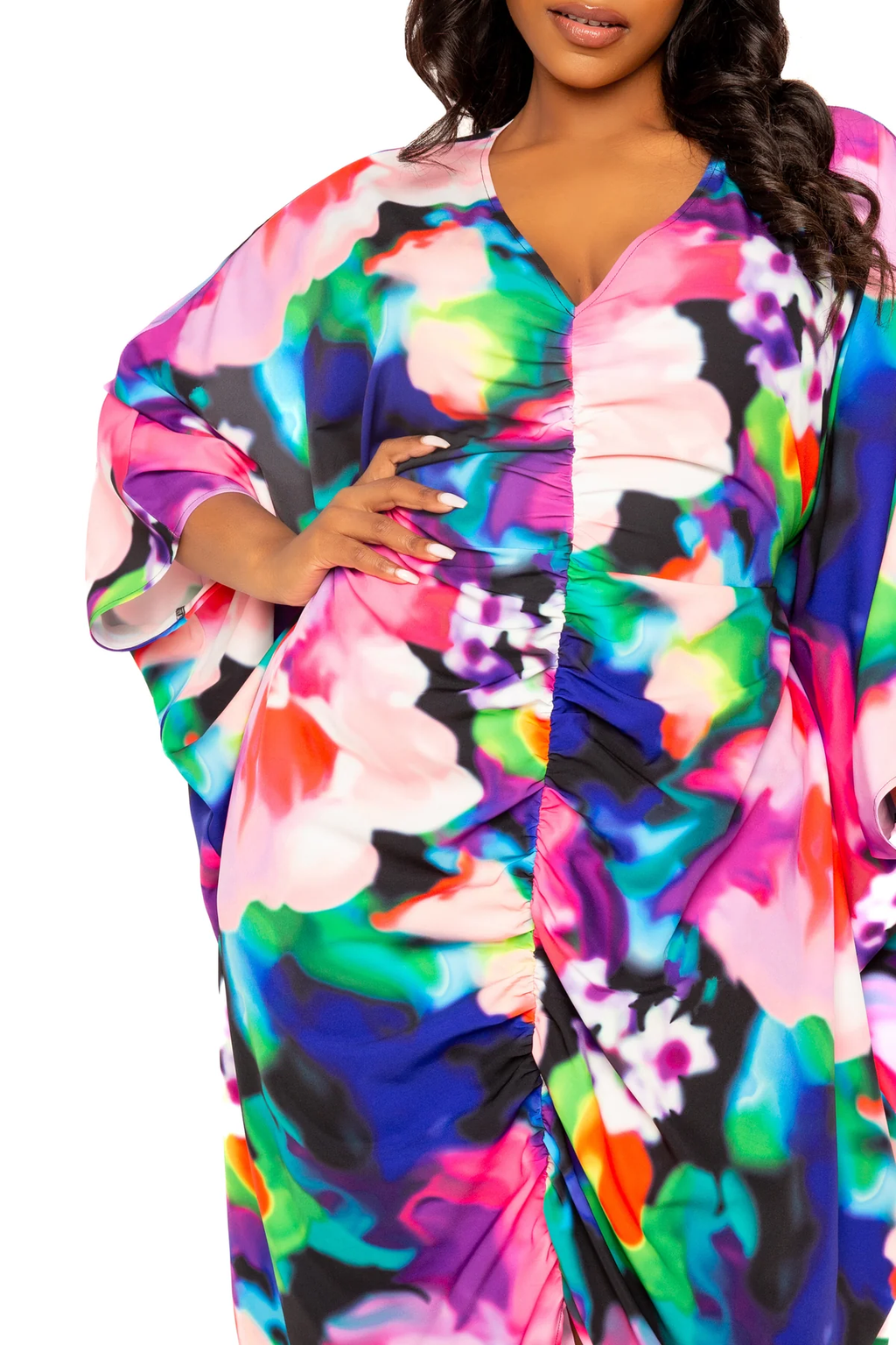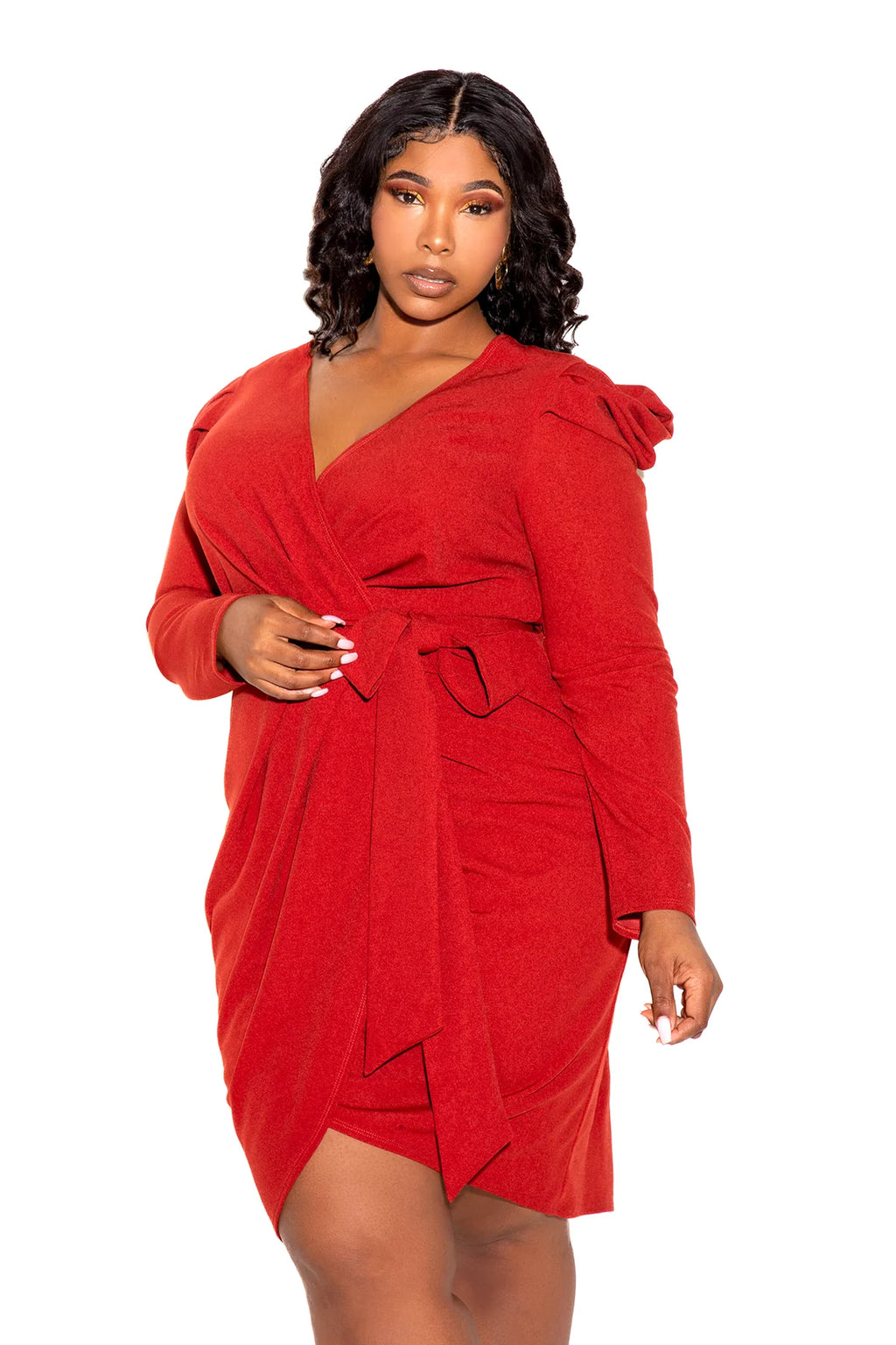 RHINESTONE RUCHED PLUS SIZE MIDI DRESS