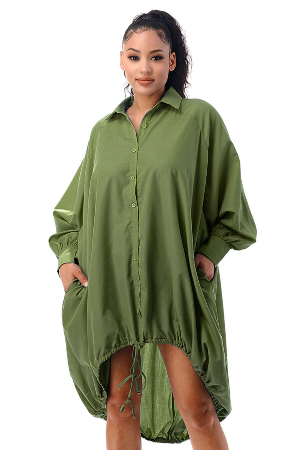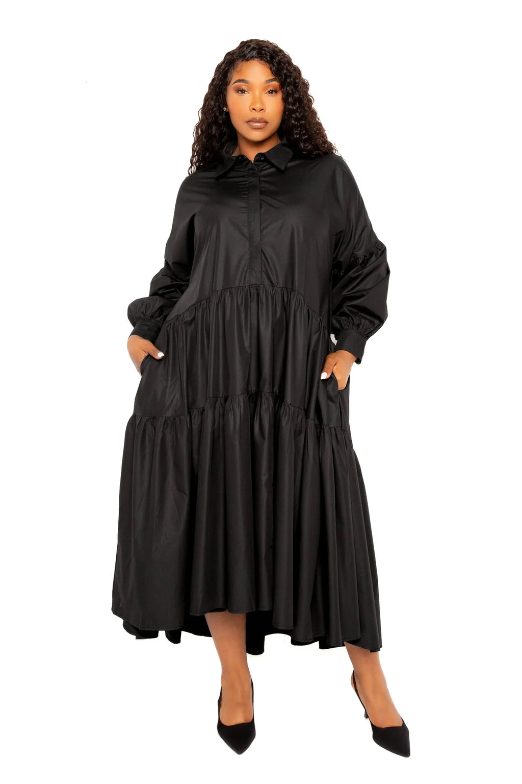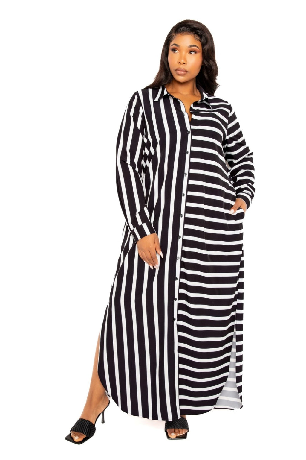LONG SLEEVE BUTTON-UP MAXI SHIRTDRESS