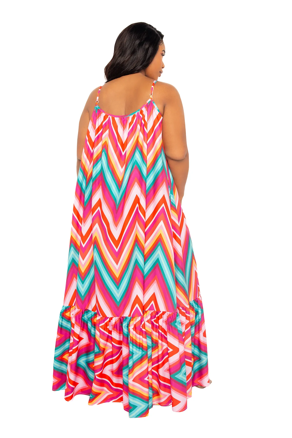 RHINESTONE PIN PLEATED PLUS MAXI DRESS