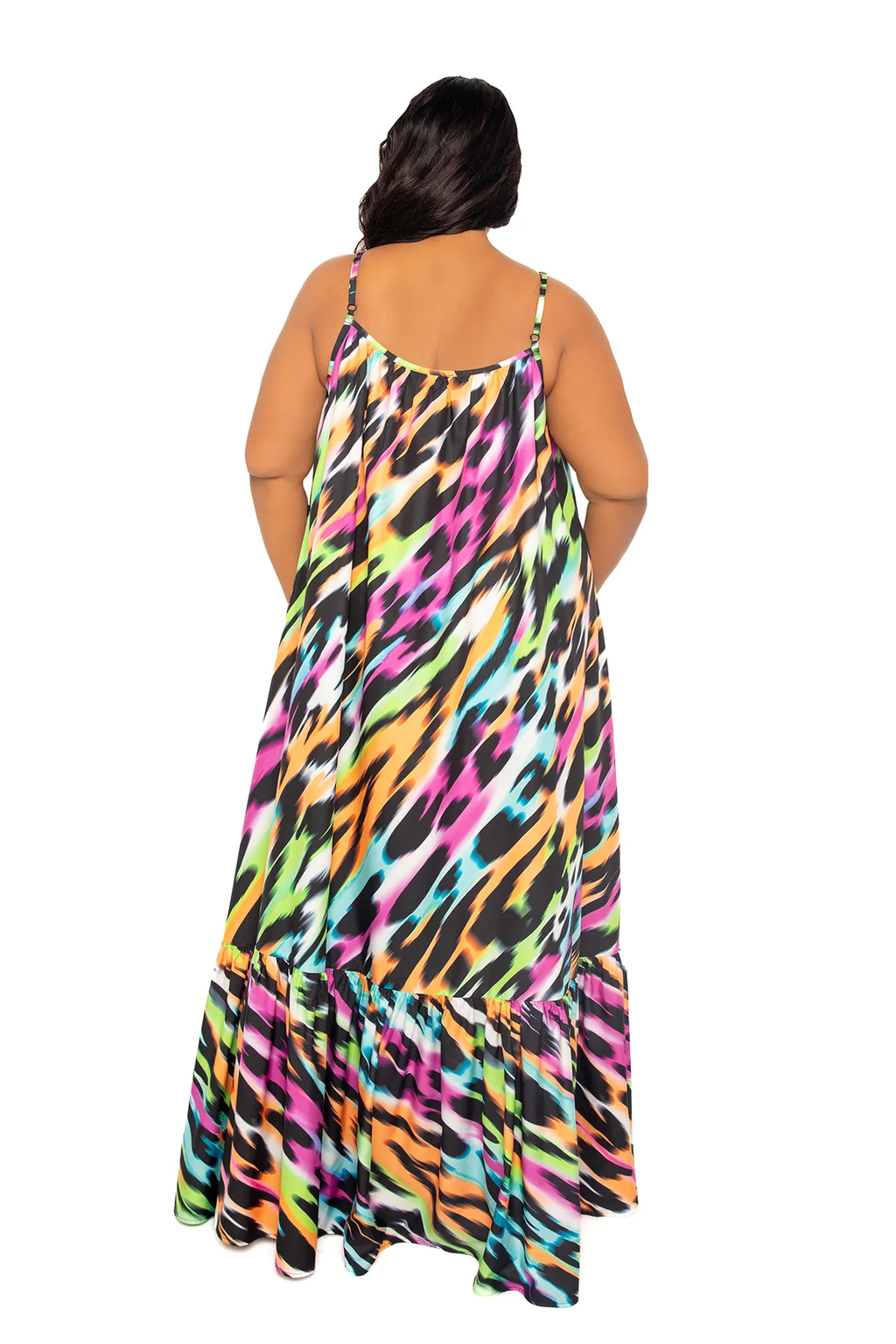 ANIMAL PRINT VOLUMINOUS MAXI DRESS