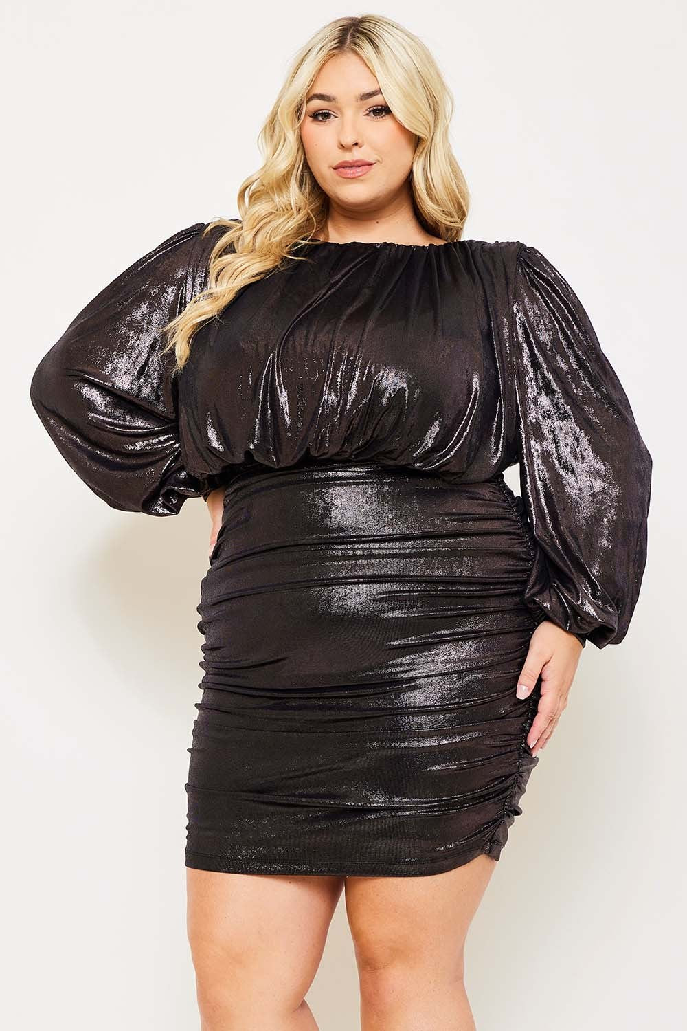 METALLIC FOIL PLEATED PLUS SIZE MINI DRESS