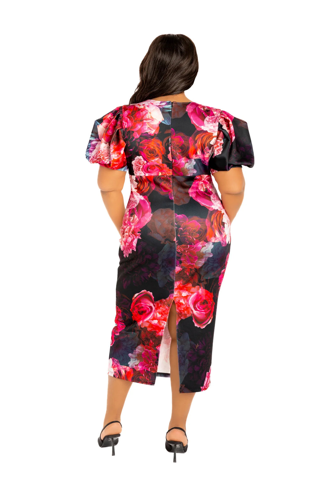 SMOCKED PUFF SLEEVE BUBBLED DRESS